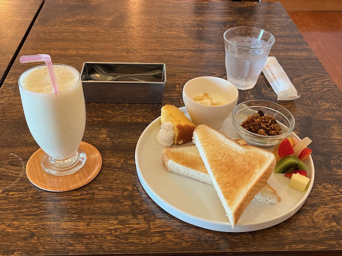 The morning set, available until 11 AM, is a fantastic way to start your day. For just 750 yen, you can enjoy a delightful breakfast featuring freshness, such as homemade granola, rich yogurt, and seasonal fruits alongside a generous slice of shifon cake and a refreshing mixed juice. Customer reviews highlight the unique texture and taste of the homemade granola and the inviting flavors of the fruits, which are perfectly paired with their signature light and fluffy cake.